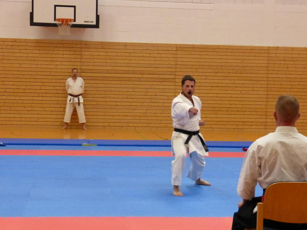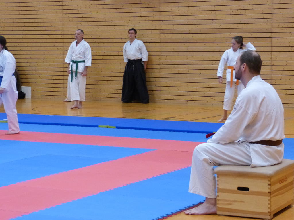 Nach der Vereinsmeisterschaft wurde es für einige Karateka noch einmal spannend, denn die Kyu-Prüfungen zum Jahresabschluss 2018 standen bei Shihan Züllich an. Schon etwas geschwächt durch das Turnier, der Wartezeiten und der späten Stunde gaben alle Teilnehmer nochmal alles und konnten zur Zufriedenheit von Shihan Züllich ihre Prüfungen bestehen.