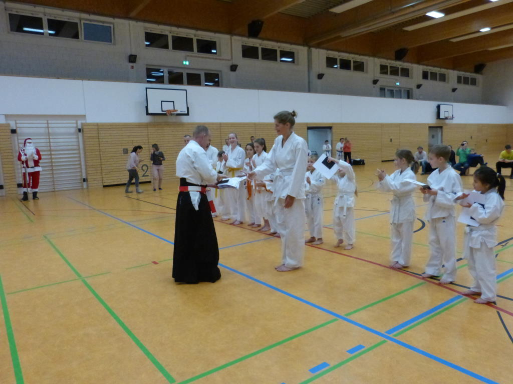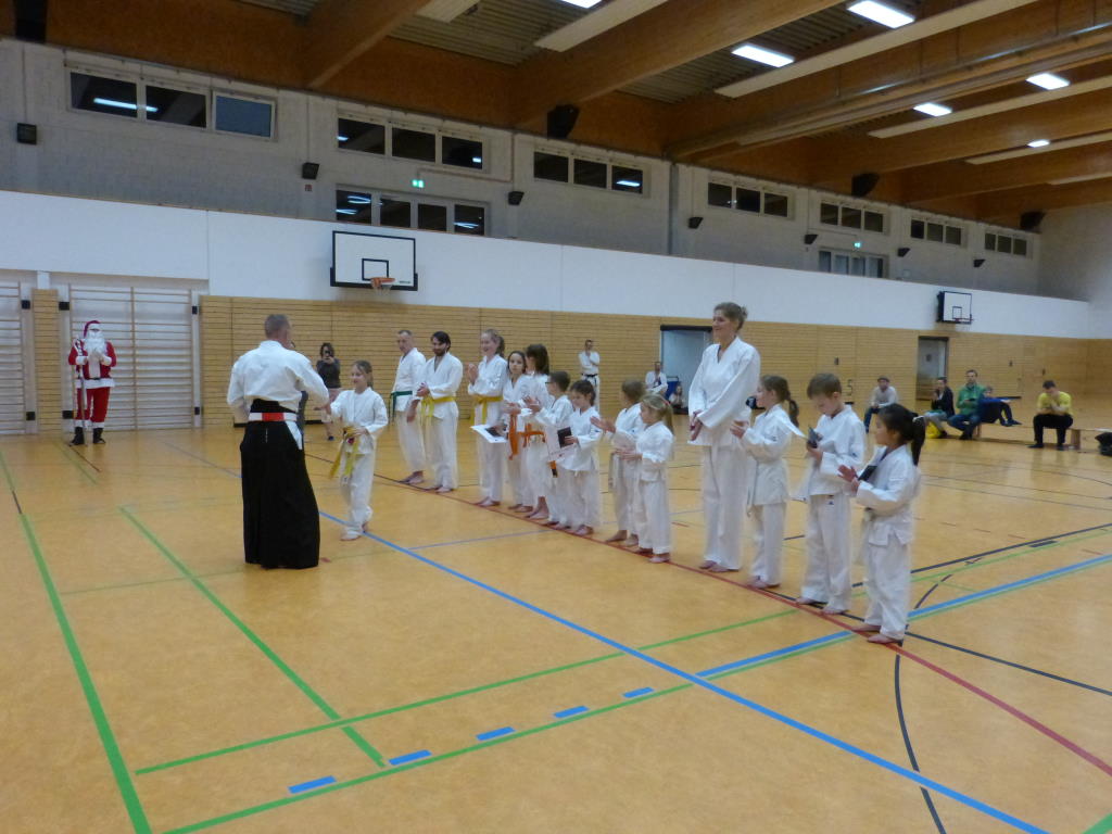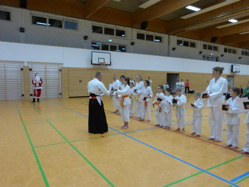 Da Weihnachtsmann, Eltern und alle Trainer sehr zufrieden waren, bekamen alle Kinder Ihr erstes Karate-Heft vom Weihnachtsmann überreicht.