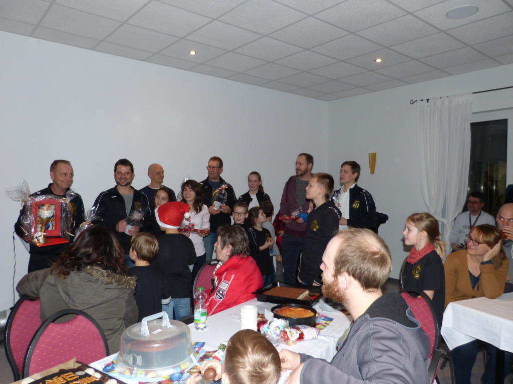 Zu Beginn der Weihnachtsfeier bekamen die Trainer erst einmal eine strenge Aufforderung sich einzufinden. Dann trugen einige Kinder und Jugendliche ein wunderschönes, selbstgeschriebendes Gedicht vor und die Trainer wurden von den Mitgliedern als Dank ihrer Arbeit beschenkt. Alle freuten sich sehr, denn damit hatte keiner gerechnet.