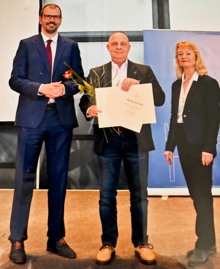 Anlässlich des Ehrenamtsempfangs des Brandenburger Ministerium für Bildung, Jugend und Sport, wurden Thomas und Nicole Züllich für ihre jahrelange Vorstandsarbeit, durch den Minister Steffen Freiberg und die Staatssekretärin Claudia Zinke am 12.04.2024 ausgezeichnet. Der Ehrenamtsempfang fand im feierlichen Rahmen in der Orangerie der Biosphäre Potsdam statt.