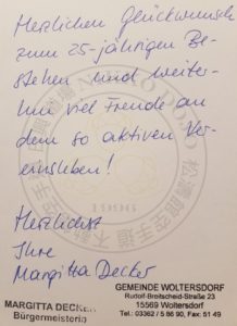 wir haben uns sehr über Ihre persönlichen Glückwünsche zum 25-jährigen Bestehen des Nikko Dojo e.V. gefreut.