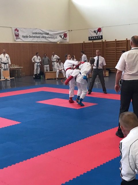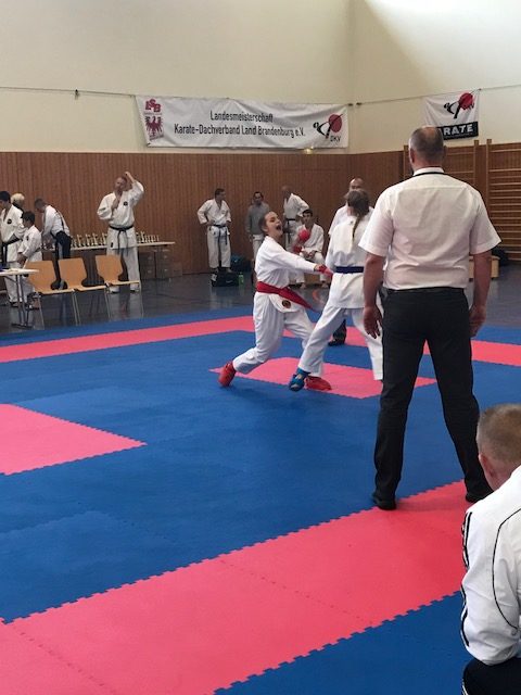 Die Kampfrichter bemühten sich, die Katarunden der Kinder und Jugendlichen zügig durchzuführen, sodass alle pünktlich eine Mittagspause hatten. Lediglich ein Kampfrichtergespann arbeitete nahezu ohne Pause. Mit dabei war unser Kindertrainer Dirk Schneider, der unermüdlich den ganzen Tag hervorragend über die Leistungen der Teilnehmer entschied. Robin Zehbe unterstützte die anderen Kampfrichter und wurde regelmäßig eingesetzt, um Erfahrungen zu sammeln und die persönliche Kampfrichterleistung zu verbessern.