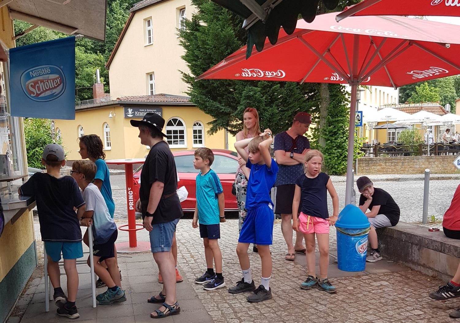 Der Zieleinlauf wurde dann von allen zelebriert. Schnell wurde noch ein Wasserschlauch aus einem nahen Grundstück organisiert, so dass sich die völlig überhitzten Läufer abkühlen konnten. Einige verrückte Erwachsene starteten dann sogar noch eine zweite Runde, bis sich alle Teilnehmer zur Schleuse begaben, um dort ein Eis oder eine Bratwurst entgegenzunehmen und sich von den Anstrengungen des Laufs zu erholen.