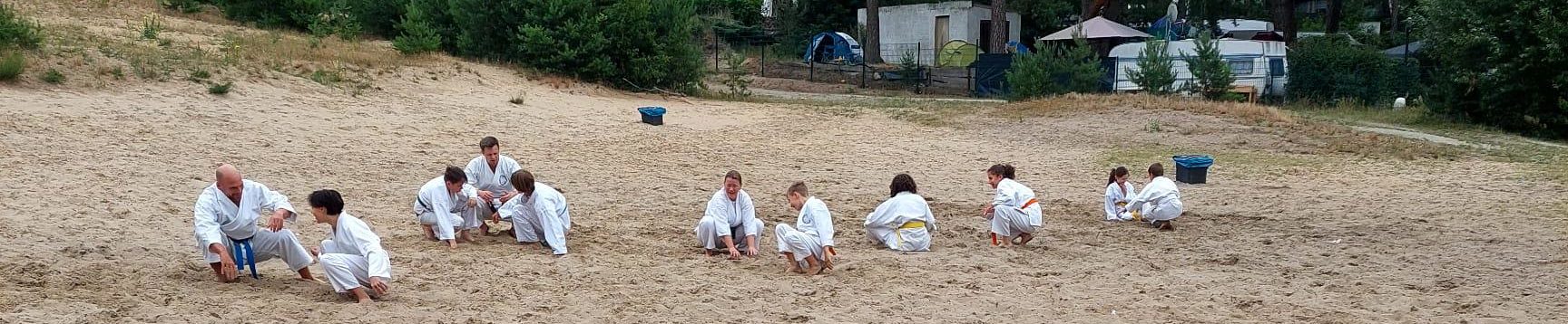 Am 09.07.2022 war der Nikko Dojo e.V. am Strand beim Flakensee zum Training verabredet. Zehbe Sensei hat hier ein besonderes Programm vorbereitet, wodurch die Trainierenden Bekanntes auf ungewohntem Untergrund trainieren konnten. Der erste Teil beinhaltete eine Erwärmung und ein kurzes Kihon-Programm für Stabilität.